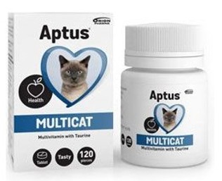 Aptus Multicat, vitaminozně-minerální doplněk stravy pro kočky s příchutí lososa.