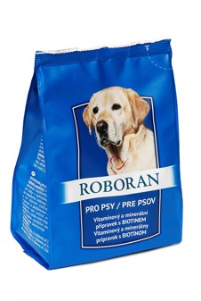 Roboran, přípravek pro psy, obsahující kromě nejdůležitějších vitamínů a minerálních látek v optimálním poměru i chuťové korigens, pro které je Roboran psy dobře přijímán.