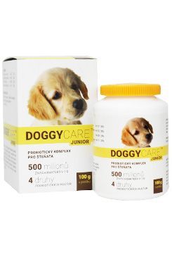 Doggy Care Junior Obsahuje 4 kmeny bakterií mléčného kvašení ve zcela unikátním složení, v maximální síle a koncentraci pro potřebu zdravé střevní mikroflóry štěňat.Přípravek je vhodný při léčbě antibiotiky, prevenci a léčbě průjmů. Prášková forma přípravku rozpustného v jakékoliv tekutině nebo v krmivu umožňuje snadné podání. Přípravek Doggy Care je doporučován zejména v případech, kdy střevní mikroflóra psů a štěňat vykazuje silný deficit prospěšných bakterií. Složení přípravku je předpokladem prevence či efektivního ovlivnění průběhu závažných onemocnění trávicího ústrojí, např. zánětu střev. Včasnost a pravidelnost podávání vhodných probiotik patří mezi základní atributy úspěšného boje proti střevním i jiným onemocněním. Cílem probiotických přípravků není eliminace "nepřátelských" bakterií, ale navození bakteriální rovnováhy ve střevním traktu. Složení a množství prospěšných bakterií v jednom gramu bylo konzultováno s předními českými a kanadskými odborníky.
