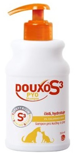 Pouze pro vnější použití. Namočte zvíře teplou vodou a aplikujte DOUXO S3 PYO šampon na srst celého povrchu těla až do vytvoření husté pěny. Důkladně promasírujte srst zvířete. Šampon nechte působit 5-10 minut, potom pečlivě opláchněte vodou. Podle potřeby je možné šamponování zopakovat. Zabraňte kontaktu s očima. Dávkování: