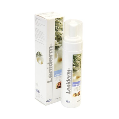 Specielní šampón či pěna s ovesným mlékem pro psy a kočky představuje rychlou úlevu pro podrážděnou kůži, Leniderm pěna je ideálním doplňkem Leniderm šampónu. Pěna čistí a osvěžuje bez použití vody rychle a účinně, zanechává srst měkkou, zářivou a svěží bez nutnosti oplachování. Leniderm má pH 7, pěna předchází teplotnímu šoku při koupání.Díky tomu je pěna vhodná zejména pro Leniderm pěna