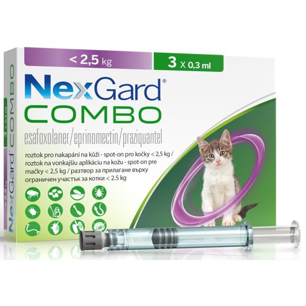 Antiparazitikum pro kočky od 8týdnů věku se smíšenou infekcí nebo s rizikem smíšené infekce tasemnicemi (Cestoda), hlísticemi (Nematoda) a ektoparazity. Veterinární léčivý přípravek je určen výhradně pro případy, kdy je léčba zaměřena na všechny tři skupiny najednou.