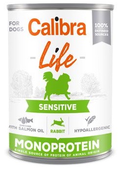 Calibra Dog Life Sensitive - receptura konzervy je kompletním krmivem, které je určené pro dospělé psy a vhodné i pro citlivé zažívání. Hypoalergenní receptura je monoproteinová, je sestavena z limitovaného počtu ingrediencí, je bezlepková, s nízkým obsahem rýže, výborně stravitelná. Obsahuje jen 100% specifikované suroviny té nejvyšší kvality.