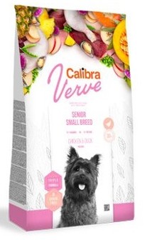 Calibra Dog Verve Senior Small Breed (Chicken & Duck) – je kompletní suché krmivo s čerstvým masem bez obilovin pro dospělé psy nad 7 let malých plemen s hmotností 1-10 kg.