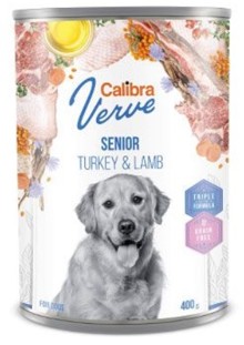 Calibra Dog Verve Adult Senior Turkey & Lamb je kompletní krmivo bez obilovin určené pro starší psy nad 7 let. Recepturu tvoří nevšední kombinace krůtího a jehněčího s mrkví, pastinákem, šípky, rakytníkem a čekankou.