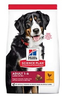 Velcí psi mají specifické nutriční potřeby, proto má Hill's Science Plan krmivo pro dospělé psy velkých plemen s kuřetem speciální složení pro naplnění energetických potřeb psů velkých plemen během nejlepších let života. Toto krmivo pro velké dospělé psy je vyrobeno z vysoce kvalitních, lehce stravitelných ingrediencí, obsahuje vysoce kvalitní bílkoviny pro tvorbu svalové hmoty, dále glukosamin a chondroitin pro zdravé klouby a mobilitu. Vyvážená směs omega-6 a vitamínu E vyživuje kůži pro zdravou a lesklou srst. S novým vzhledem Science Plan se máte na co těšit. Některé produkty teď navíc mají nové jméno, tvar granulí a recepturu.