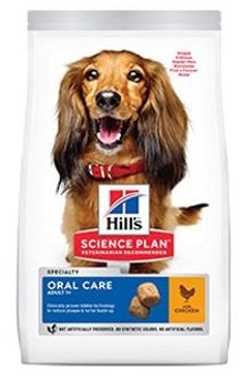 Dentální zdraví psa znamená víc než jen zuby. Podpořte celkové zdraví a vitalitu vašeho dospělého psa krmivem Hill's Science Plan Oral Care pro dospělé psy s kuřetem. Unikátní granule s klinicky ověřenou, provázanou technologií vlákniny s každým kousnutím čistí zuby a osvěžují dech. Navíc má toto prvotřídní psí krmivo vysoký obsah omega-6 mastných kyselin a vitamínu E pro každodenní podporu zdravé srsti a kůže. Tato receptura byla vytvořena na základě desetiletí špičkového výzkumu a představuje lahodnou stravu, na níž si dospělí psi skutečně pochutnají.