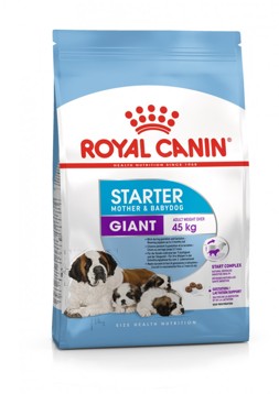 Royal Canin Starter Mother&Babydog Giant je kompletní super prémiové krmivo pro štěňata (do 2 měsíců věku) a březí/kojící feny obřích plemen (nad 45 kg váhy v dospělosti).
