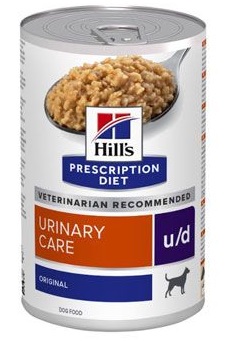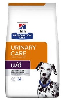 Hills™ Prescription Diet™ Canine u/d™: močové kameny u psů (urolitiáza – prevence urátů, oxalátů, cystinů a křemičitanů, rozpouštění urátů a cystinů), onemocnění ledvin, onemocnění jater