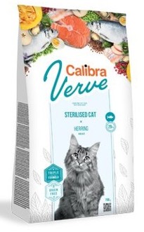 Calibra Cat Verve Sterilised Herring – kompletní krmivo bez obilovin s vysokým obsahem čerstvého masa. Receptura je určená pro sterilizované a kastrované kočičky.