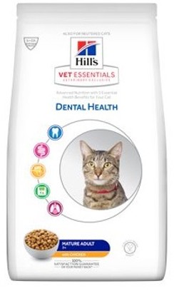 Exkluzivní veterinární krmivo. Zdokonalená výživa s klinicky ověřenými přínosy, která pokrývá 5 základních zdravotních potřeb starších koček: zuby, trávení, močový trakt, hmotnost a vitalitu.