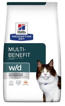 Hills™ Prescription Diet™ Feline w/d™ : prevence návratu obezity dospělých koček. Onemocnění z nedostatku vlákniny, např. konstipace, kolitis, diabetes mellitus a hyperlipidémie. Struvitovitá urolitáza u koček se sklonem k obezitě (prevence).
