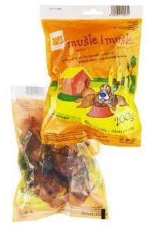 Mušle jsou ušní výkroje. Jejich nespornou předností je vysoký kolagenu a elastinu,obsah minerálních látek. Jsou tučnější než uši a proto pozor na podávání mušlí u pejskům s nadváhou. Co je nevýhodou v jednom případě, může být zároveň výhodou v případě druhém a tak by se daly mušle určitě využít u psů, kteří né a né přibrat.