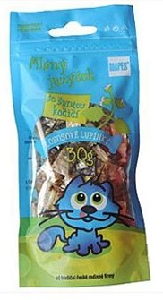 Lososové lupínky se šantou kočičí – jsou kůže z lososa s masem sušené teplým, čistým vzduchem s obsahem lososového oleje v jeho přirozené formě. Do každého sáčku je přidána snítka šanty kočičí, pěstované ve Velharticích na Šumavě, sušená přírodním způsobe